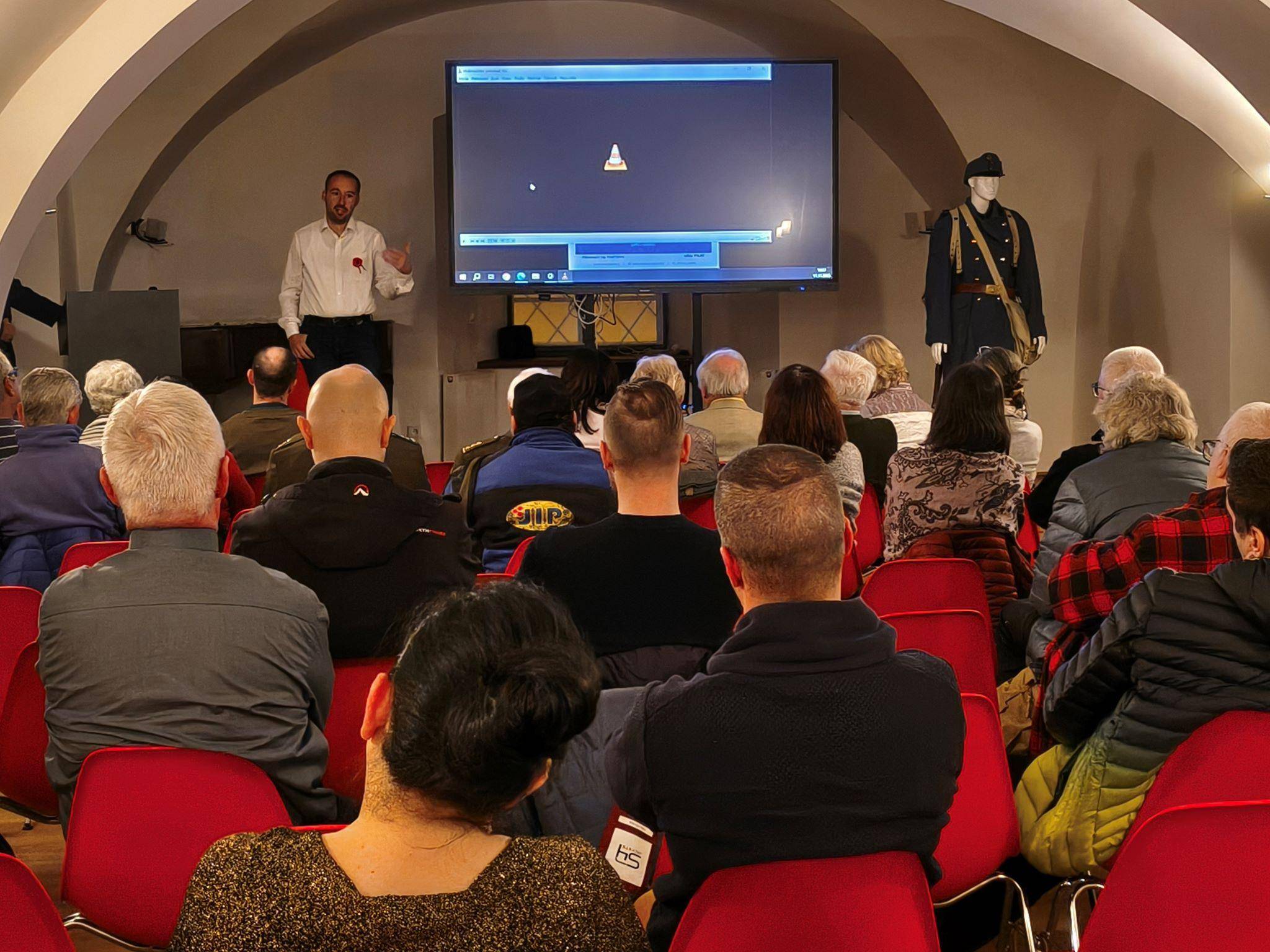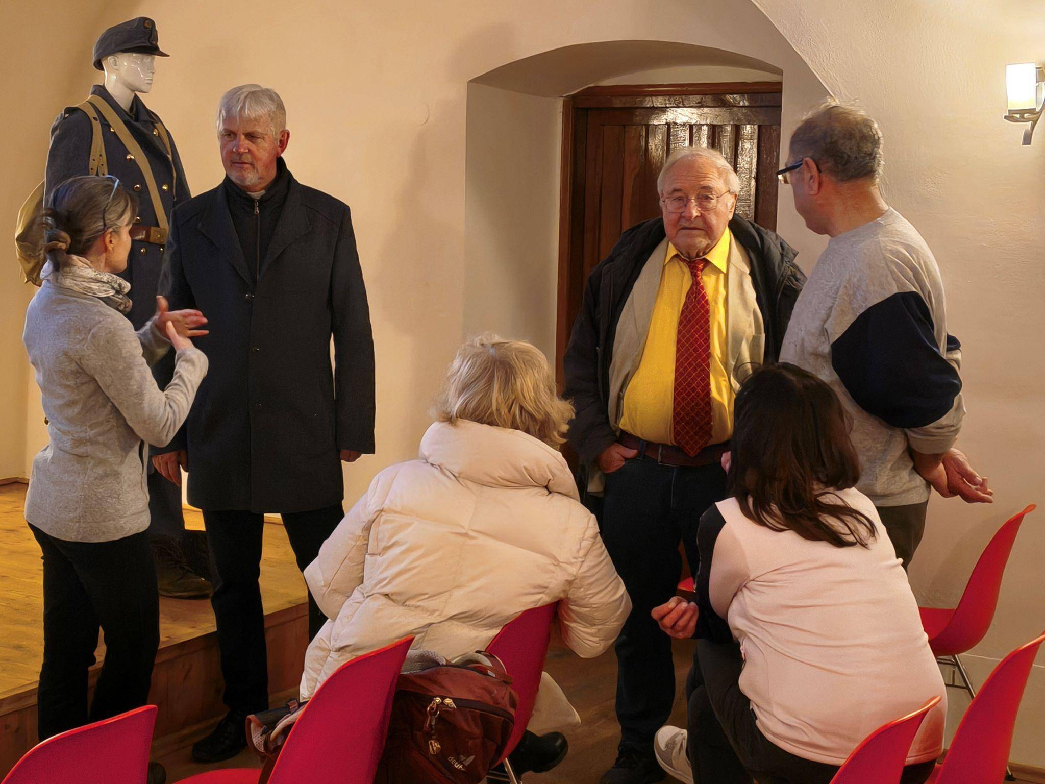 Premiéra dokumentárního filmu o vojácích z první světové války11.11.2025 V úterý 11. listopadu v 18.00 hod. proběhla v Rytířském sále Vlastivědného muzea Jesenicka premiéra dokumentárního filmu Zapomenuté příběhy vojáků z Jesenicka 1914–1918. Dokument je vyvrcholením dlouhodobé spolupráce muzea se spolkem Signum belli 1914, který se věnuje pátrání po osudech vojáků z území dnešní ČR v první světové válce. V rámci přípravy na natáčení jsme prošli sbírky muzea i materiály jesenického archivu a také oslovili potomky vojáků (žijící dnes v Německu), abychom našli informace, od kterých by se dalo v bádání odrazit. Následně jsme pátrali v archivech v Praze i Vídni a posléze se vydali přímo na bojiště, kam světová válka vojáky z Jesenicka zavedla – na území dnešního Polska, Slovenska, Ukrajiny i Itálie. Výsledkem je 43 minut dlouhý dokumentární film zachycující naše putování ve stopách několika konkrétních vojáků z Jesenicka. Po jeho promítnutí následovala krátká beseda s hlavním autorem Radimem Kapavíkem. Jelikož se akce konala na Mezinárodní den veteránů, kdy si připomínáme oběti všech válek, na závěr se účastníci přesunuli do nedalekého kostela Nanebevzetí Panny Marie, kde u bývalého památníku vojáků z města Jeseník, kteří zemřeli v důsledku první světové války, proběhla krátká bohoslužba pod vedením otce Stanislava Kotláře. Celé akce se zúčastnil také Heinz Clement z Německa, syn jednoho z vojáků, o němž dokument pojednával, který společné s námi v kostele zapálil svíci naděje. Přítomni byli potomci a příbuzní i dalších vojáků. Zájemce, kteří se premiéry nemohli zúčastnit, srdečně zveme na reprízu promítání 16. 12. 2025 v 18.00 hod. opět v Rytířském sále. | |