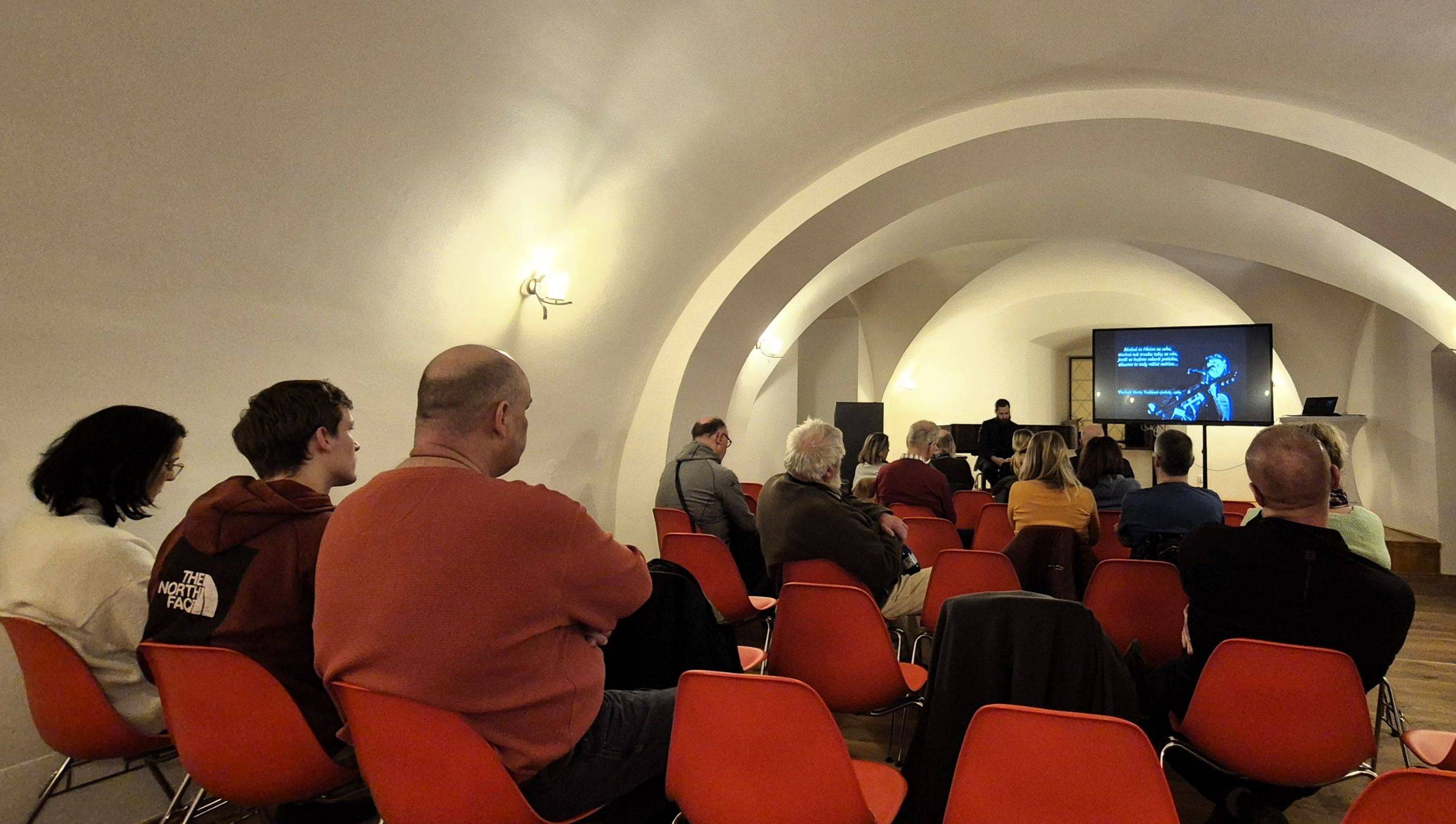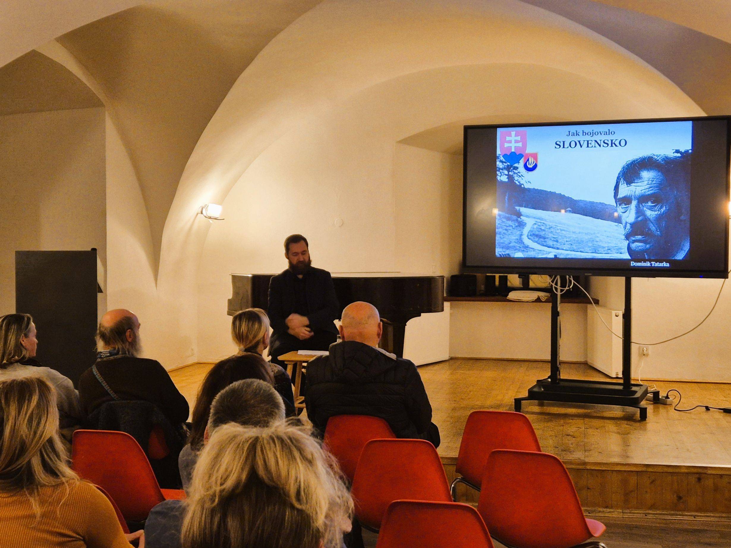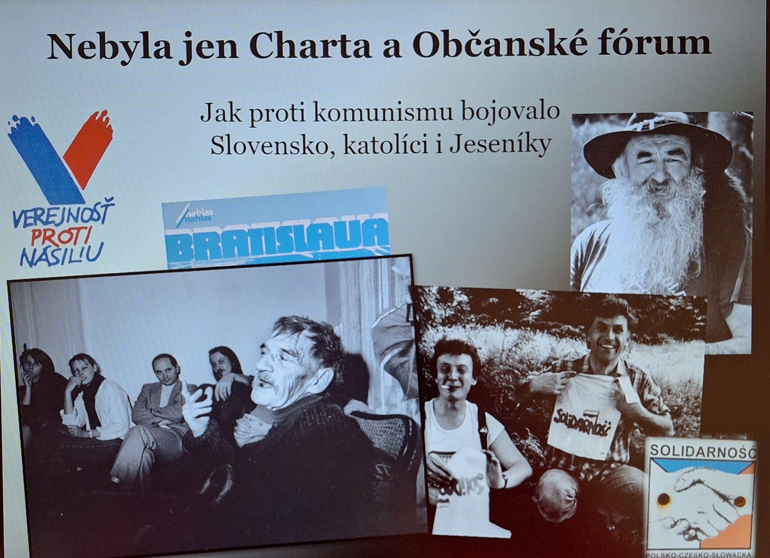 V Rytířském sále se hovořilo o slovenském i jesenickém disentu21.11.2025 V pátek 21. listopadu, přesně 36 let od založení jesenického Občanského fóra, se v Rytířském sále Vodní tvrze uskutečnila přednáška etnografa VMJ Matěje Mately, v níž účastníkům představil rozličné formy odporu proti komunistické totalitě. Večer byl zahájen netradičně, a to skladbou písničkáře Vladimíra Merty „Vzdálené výstřely“, silnou obžalobou komunistických režimů, kterou zahrál na Portě 1989. Následně se přednášející věnoval disidentským hnutím na Slovensku. Řeč tak byla o Jánu Langošovi, Jánu Čarnogurském, spisovatelce Haně Ponické, filosofovi Miroslavu Kusém, historiku Jozefu Jablonickém, legendární iniciativě Bratislava/nahlas, ale i to formách odporu v řadách menšin na Slovensku, konkrétně u Maďarů a Rusínů. Druhá polovina přednášky již patřila Jesenicku, takže nemohla chybět např. specifická tvář Jindřicha Hořelicy alias Henryho. M. Matela hovořil rovněž o disentu katolickém či proslulých schůzkách československých a polských disidentů v Rychlebských horách. Na závěr návštěvníky upozornil, aby si již v diářích poznačili termín přesně za rok. V sobotu 21. 11. 2026 se totiž uskuteční beseda o fenoménu zaniklé rakousko-uherské monarchie, uspořádaná ke 110. výročí úmrtí předposledního císaře Františka Josefa I. | |