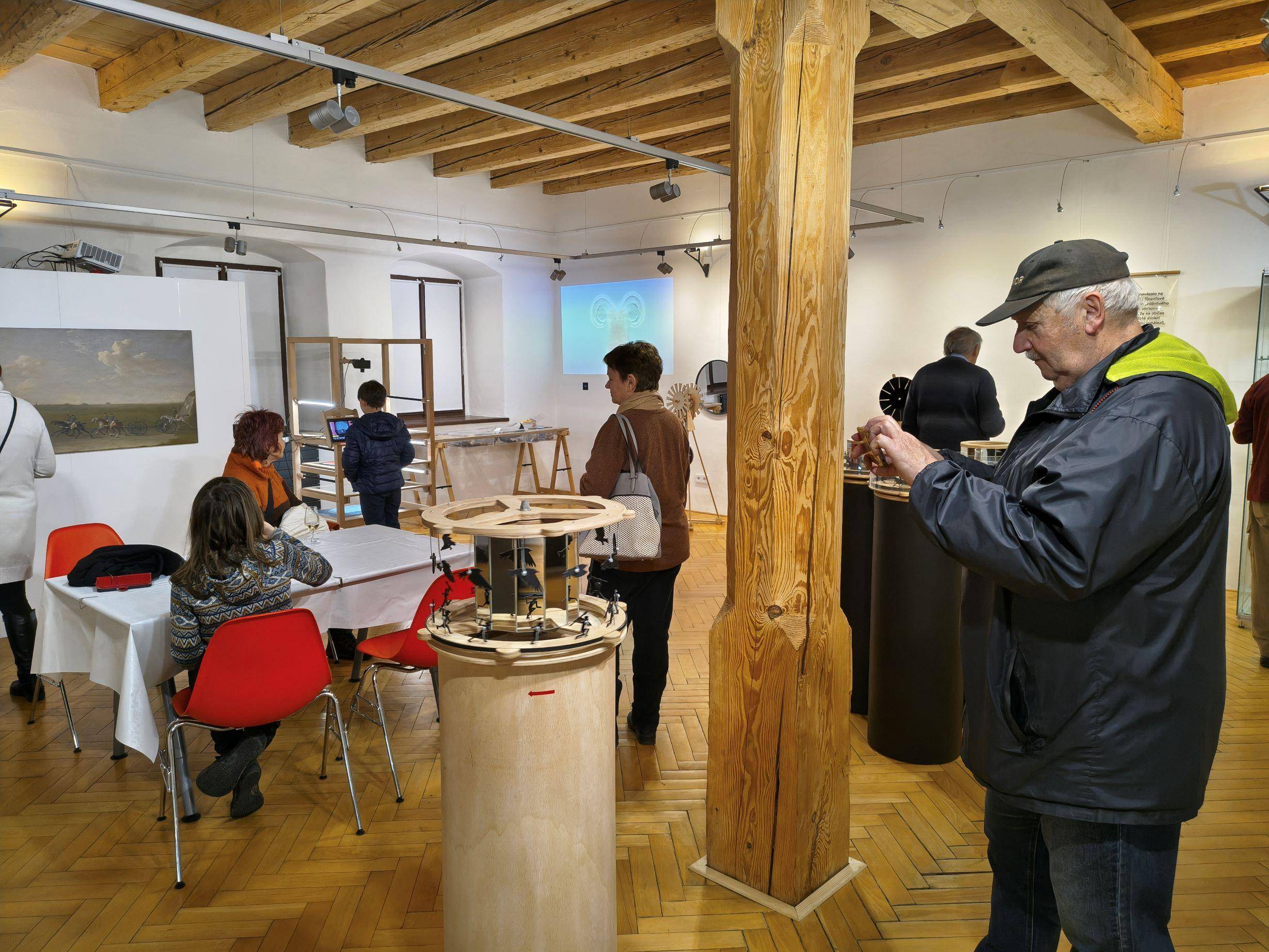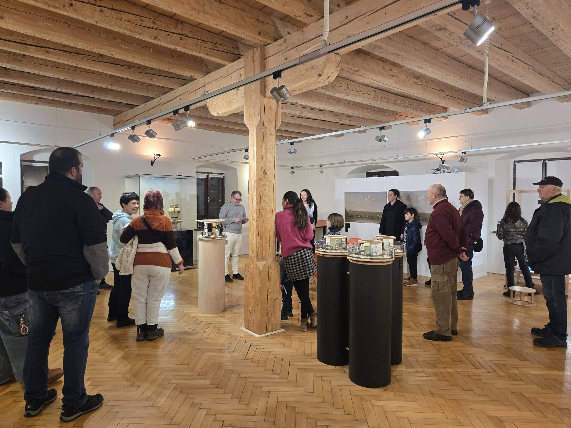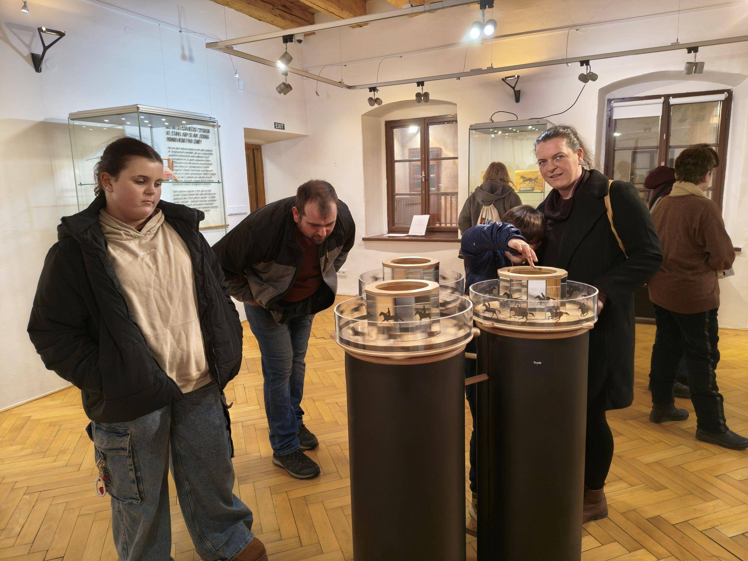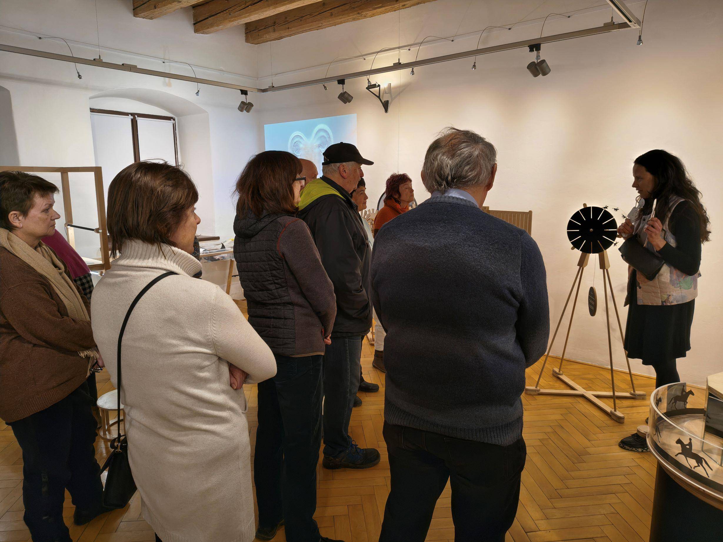 Nová interaktivní výstava pro návštěvníky je otevřena10.02.2026 V úterý 10. února v 18.00 hodin byla ve Vlastivědném muzeu Jesenicka zahájena vernisáž výstavy „Muž, který zastavil čas“. Nová interaktivní výstava pro děti i dospělé o legendární Muybridgeově sérii fotografií běžícího koně hravou formou vysvětluje principy animačních strojů před nástupem filmu. Výstavu zahájil v zastoupení knihovník VMJ Pavel Žurek, který představil autory výstavy, tedy přítomnou Pavlu Šnajdarovou a v nepřítomnosti Ondřeje Mladého, uměleckou dvojici, která tvoří studio OPAK. Paní Šnajdarová představila návštěvníkům výstavu a komentovanou prohlídkou provedla účastníky vernisáže. Popisovala, jak se lidé před sto padesáti lety snažili odpovědět na otázku „zdánlivého pohybu“. Muybridgovo a Stanfordovo snažení navázalo na zájem celé řady jejich současníků, pochopit fenomén „zdánlivého pohybu“ se snažili lékaři i filozofové. Jak to, že rychle se střídající obrazové vjemy někdy splývají v jeden? Jak je možné, že se točící kola občas zdánlivě zastaví? Devatenácté století bylo stoletím fascinace pohybem. Dobou vynálezů, které byly někdy učebními pomůckami, jindy hračkami – a často obojím. Paní Šnajdarová popsala a předvedla, jak stroje ve výstavě fungují. Součástí je samoobslužné animační stanoviště, ve kterém si každý může vytvořit krátkou animaci pomocí stop-motion techniky a poslat si ji na email. K vyzkoušení jsou také další animační stroje, například flipbooky, do kterých si lze nakreslit dvanáctifázovou animaci. | |