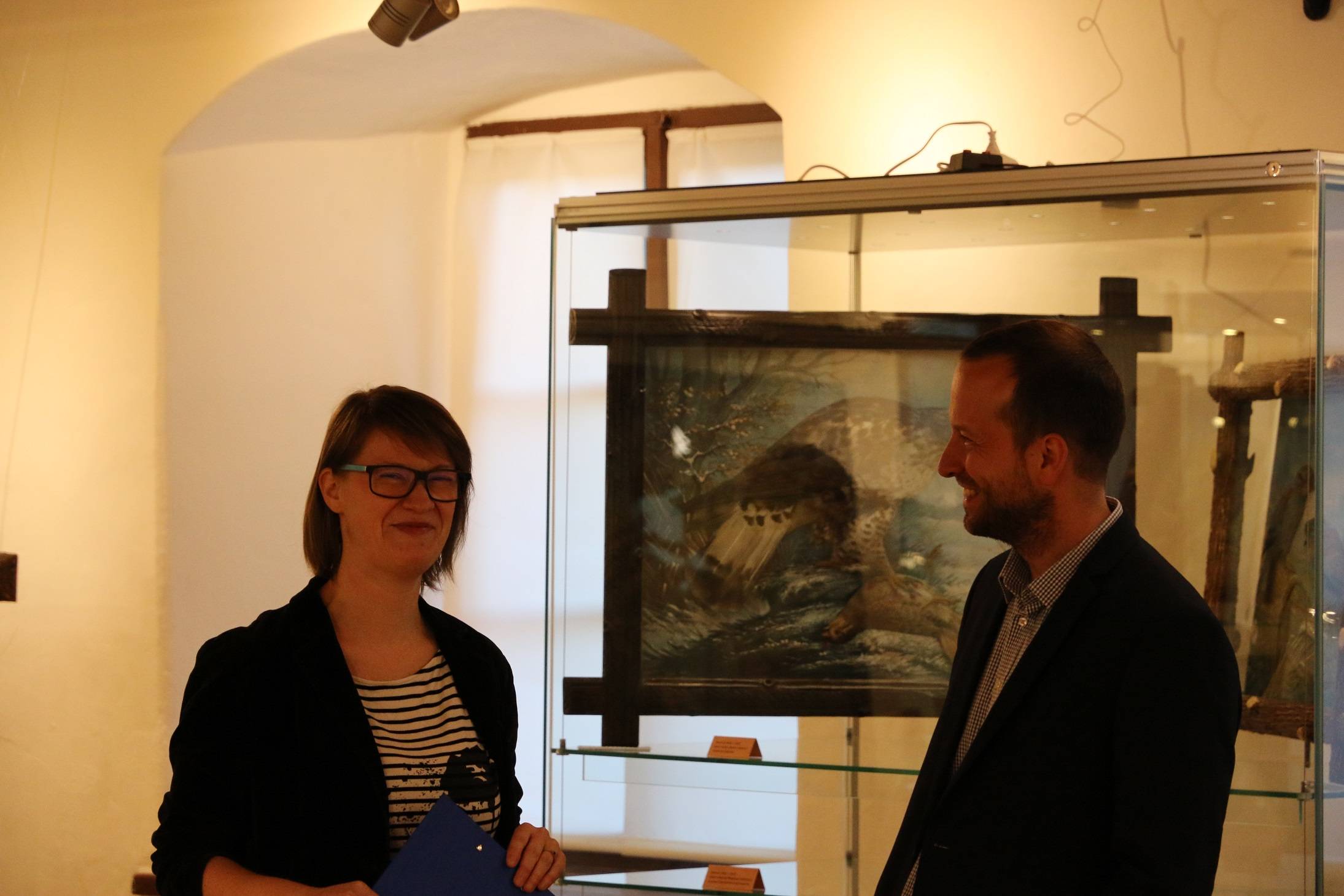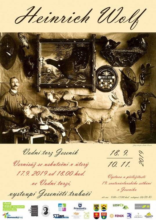 Heinrich Wolf (vernisáž)17.09.2019 17. září 2019, Hlavní výstavní sál Vodní tvrze V roce 2018 získalo Vlastivědné muzeum Jesenicka do správy 14 obrazů od Heinricha Wolfa a jeden od Josefa Appela, tzv. „polovycpaniny.“ Jedná se o taxidermické reliéfní obrazy ptactva pocházejícího z našeho regionu z 1. pol. 20. století. Jednotlivé druhy jsou zakomponované do jejich přirozeného prostředí, každý výjev je pečlivě propracován, tělo obklopuje malba krajiny. Výjev dokončuje masivní rám v podobě větví stromu. Na obrazech můžeme vidět např. kachny, tetřevy, ledňáčky, sovy, dudky, koroptve, bažanty, dravé ptáky, ale rovněž fretky. Díla se využívala jako učební pomůcky a byla oblíbenou dekorací v interiérech. Heinrich Wolf (1873–1938) se narodil v Javorníku-Vsi, preparátorem se vyučil v Landeku. Cestoval po německých městech, kde sbíral zkušenosti. V roce 1900 si otevřel v Jeseníku preparátorskou dílnu. Za svoje obrazy získal řadu ocenění. V Jeseníku roku 1938 i zemřel. Výstava, jejíž kurátorkou je BcA. Ivana Kužílková, tematicky doplňuje XIX. svatováclavské setkání v Jeseníku. Během vernisáže vystoupili Jeseničtí trubači. | |