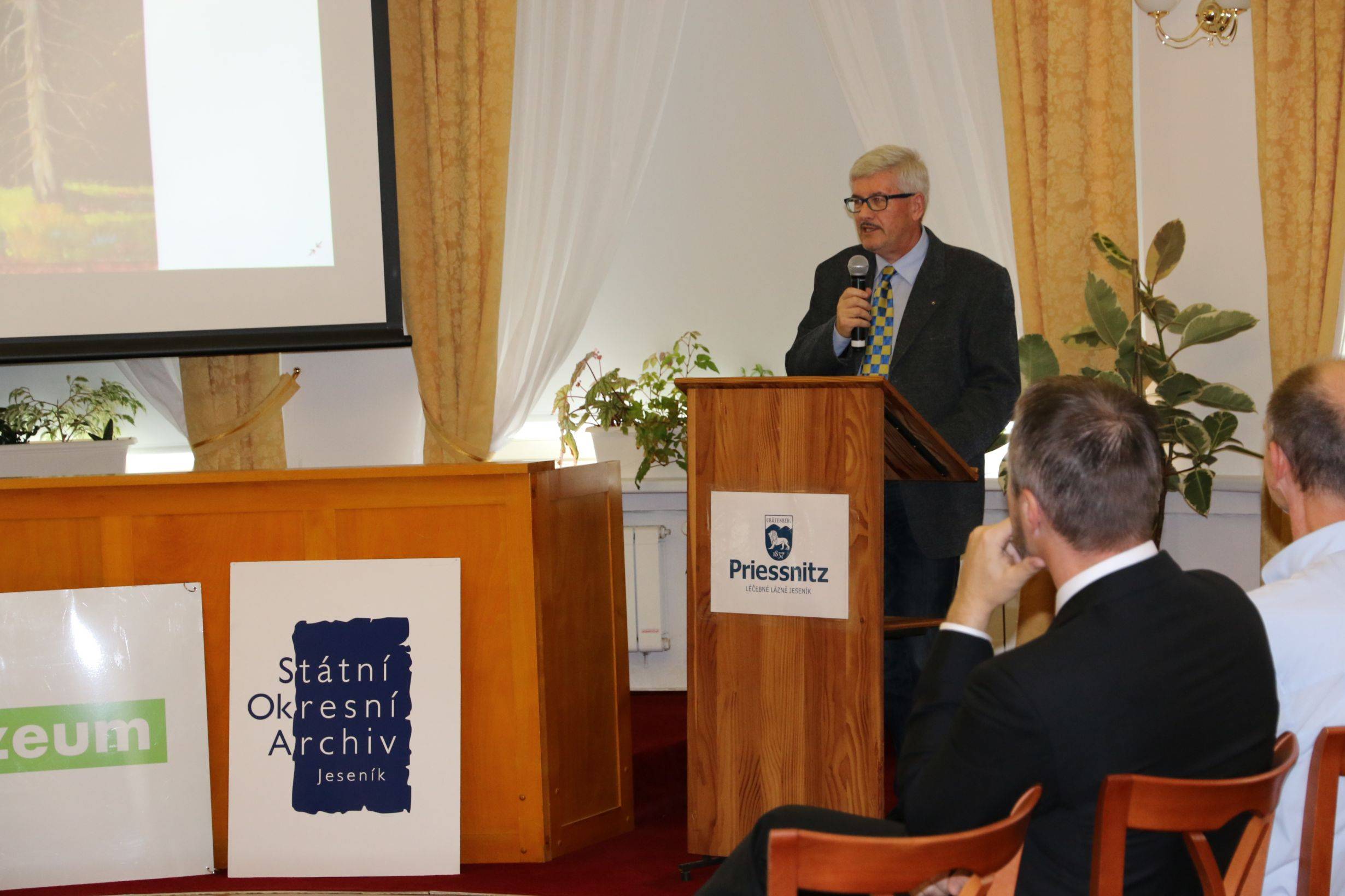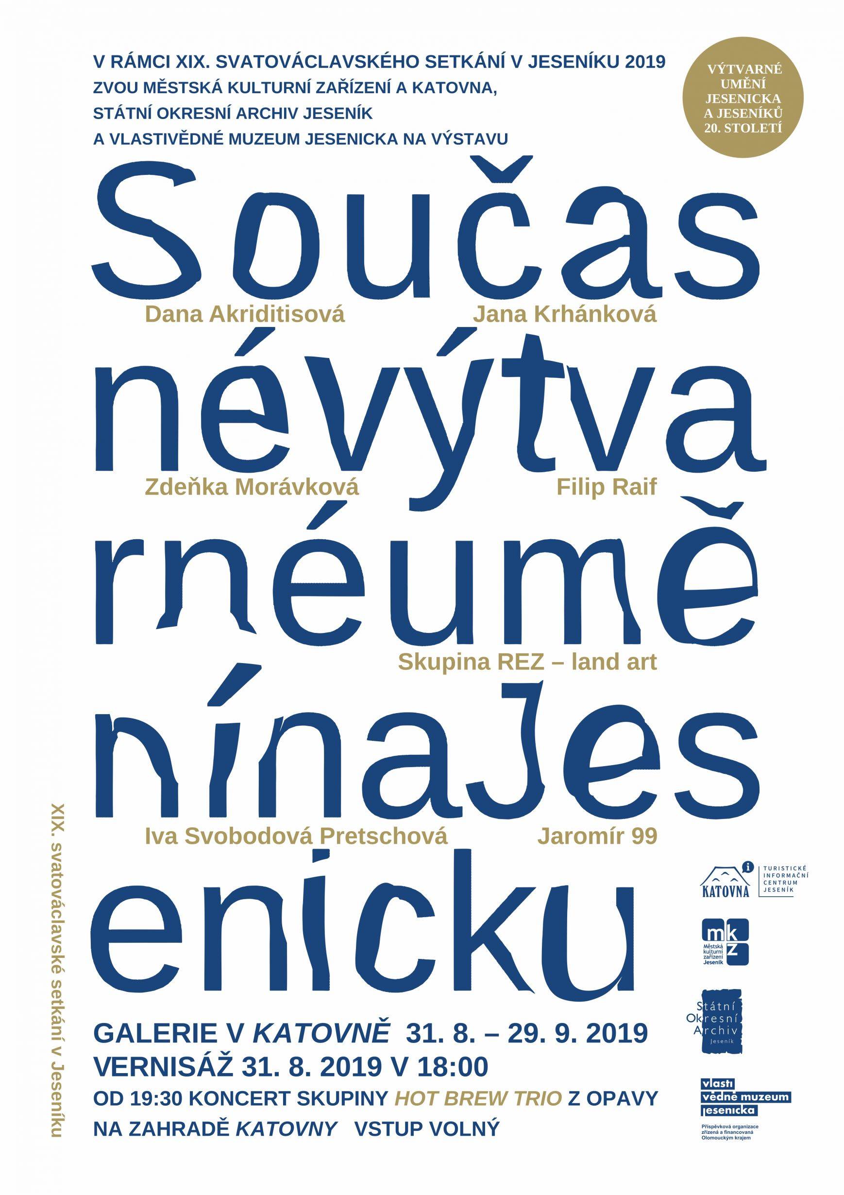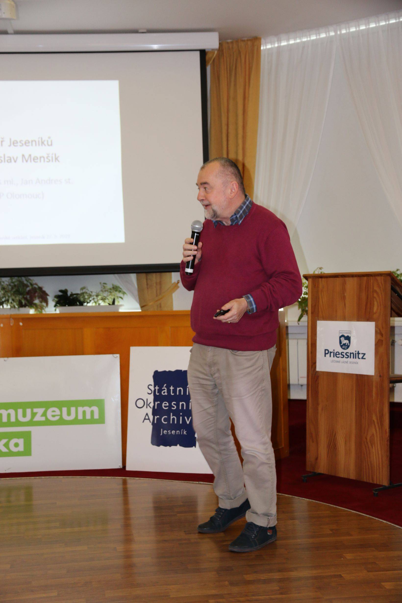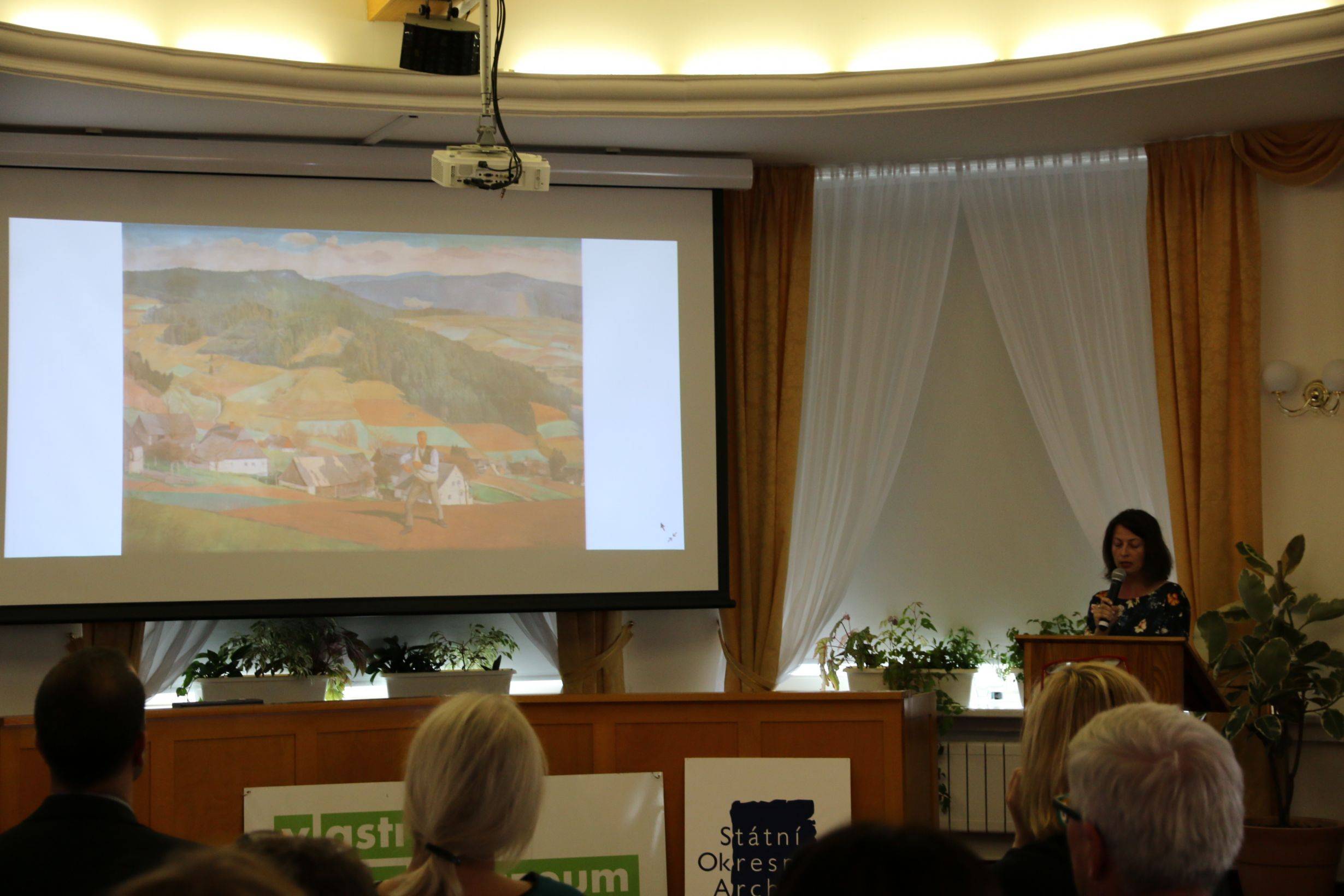 XIX. ročník svatováclavského setkání v Jeseníku28.09.2019 27. a 28. září 2019 Již XIX. ročník svatováclavského setkání se ve dnech 27. a 28. září 2019 uskutečnil pod taktovkou Vlastivědného muzea Jesenicka, Státního okresního archivu Jeseník a Společnosti Vincenze Priessnitze. Na tradičním odborném sympoziu, které se uskutečnilo dne 27. září v Zimní zahradě Priessnitzova sanatoria, jsme se mohli seznámit s uměleckou tvorbou na Jesenicku ve 20. století, zejména s malířskou tvorbou v rozmanitých podobách. Úvodní slova pronesli Mgr. Bohumila Tinzová (vedoucí SOkA Jeseník), Mgr. Miroslav Adámek (Senát Parlamentu ČR), Ing. Miroslava Březinová (vedoucí odboru PŘPO Olomouckého kraje), Mgr. Zdeňka Blišťanová (starostka města Jeseník), Ing. Roman Provazník (gen. ředitel Priessnitzových léčebných lázní) a Mgr. Irena Hošková (náměstkyně Národního institutu pro další vzdělávání MŠMT). V odpoledních hodinách se pak měli zájemci možnost seznámit se dvěma tematickými výstavami, a to formou komentované prohlídky. Ve Vodní tvrzi promluvila o životě a díle místního umělce a preparátora Heinricha Wolfa kurátorka stejnojmenné výstavy, BcA. Ivana Kužílková, kterou vhodně doplnil Mgr. Petr Zobač (Správa CHKO Jeseníky) výkladem o ornitologických zajímavostech vyobrazených druhů ptáků. Návštěvníci se následně přesunuli do IC Katovna, kde se za doprovodu Mgr. Bohumily Tinzové setkali s ukázkami současného výtvarného umění na Jesenicku. Slavnostní den před svátkem sv. Václava zakončilo promítání němého filmu Stavitel chrámu s živým hudebním doprovodem v Kině Pohoda. Dne 28. září, tedy na Den české státnosti, jsme si připomněli násilnou internaci řádových sester v době nástupu vlády komunistické strany. Sváteční mše a pietní položení věnců se konalo v kostele Navštívení P. Marie a na hřbitově v obci Bílá Voda na Javornicku. Akci finančně podpořilo Město Jeseník a Olomoucký kraj. Ke stažení