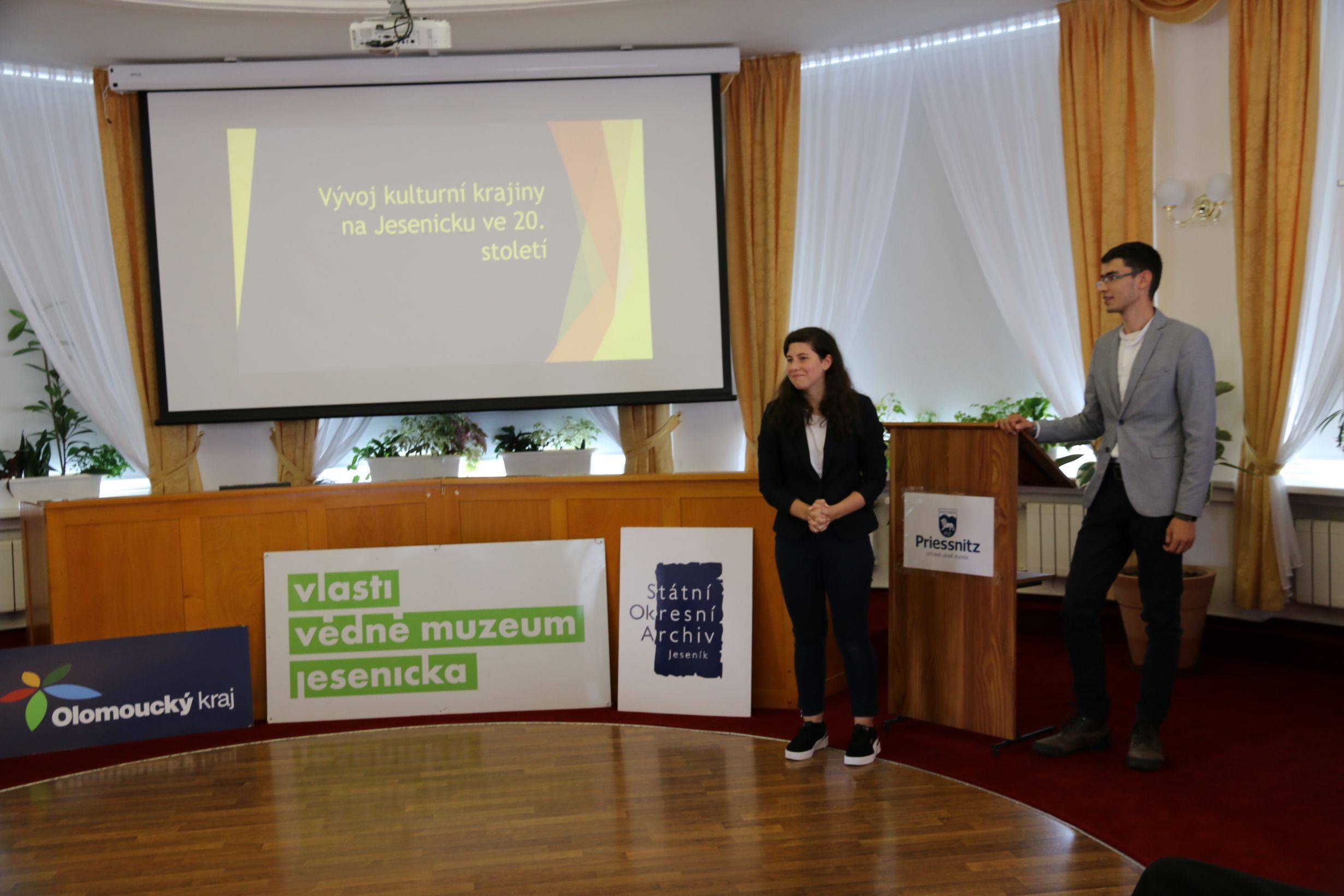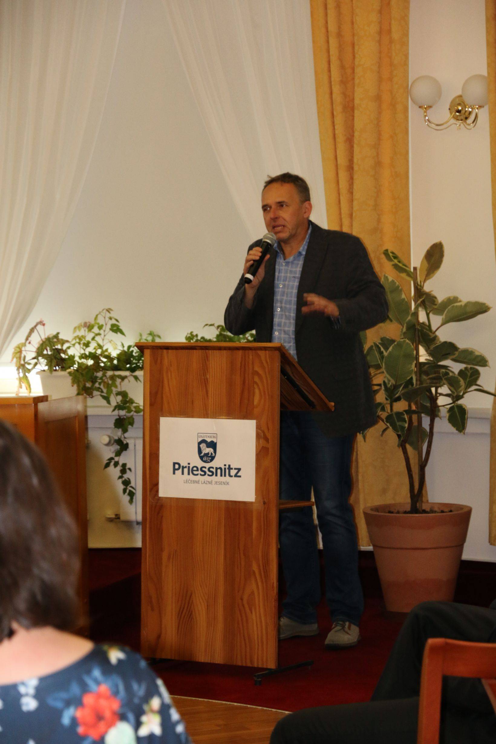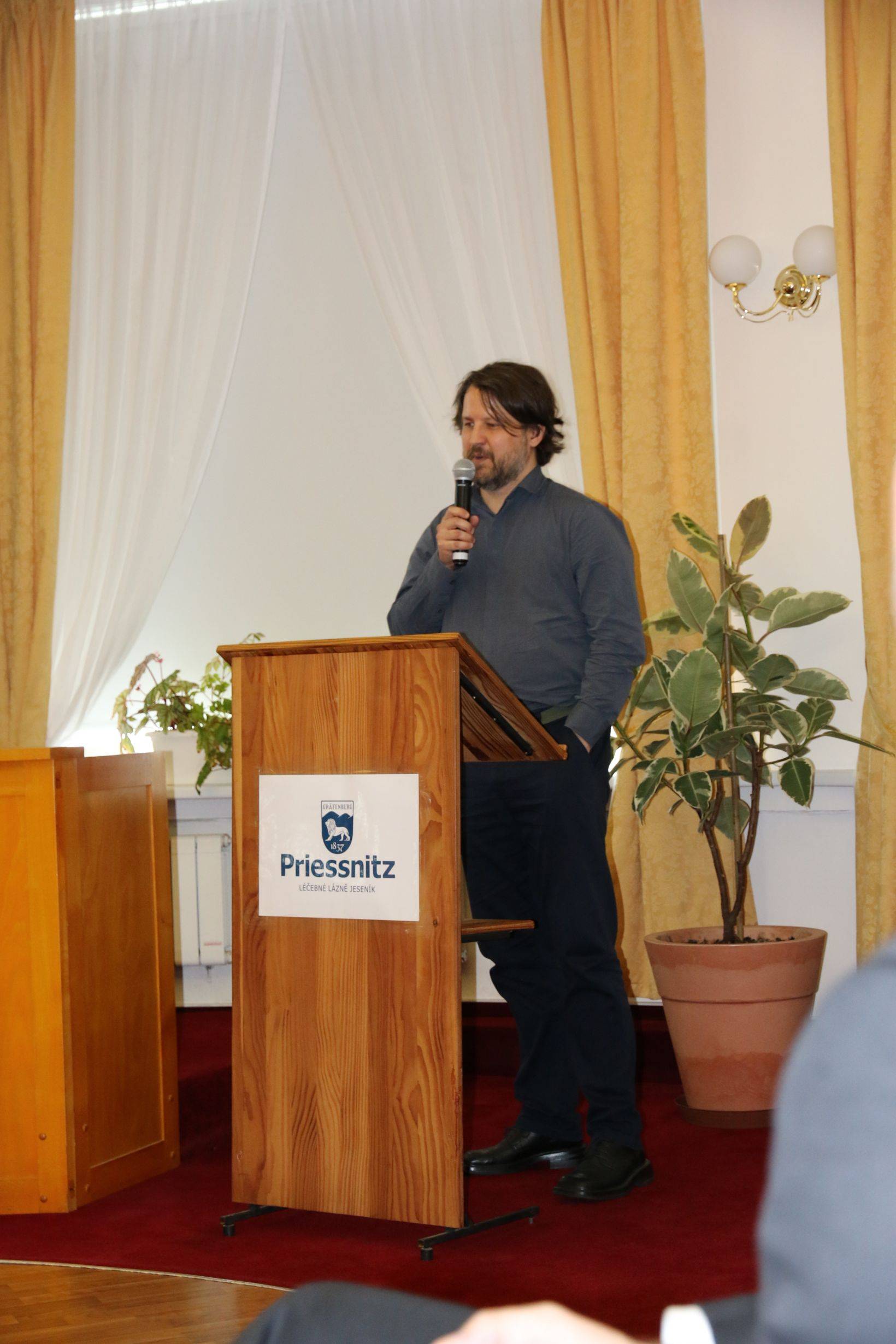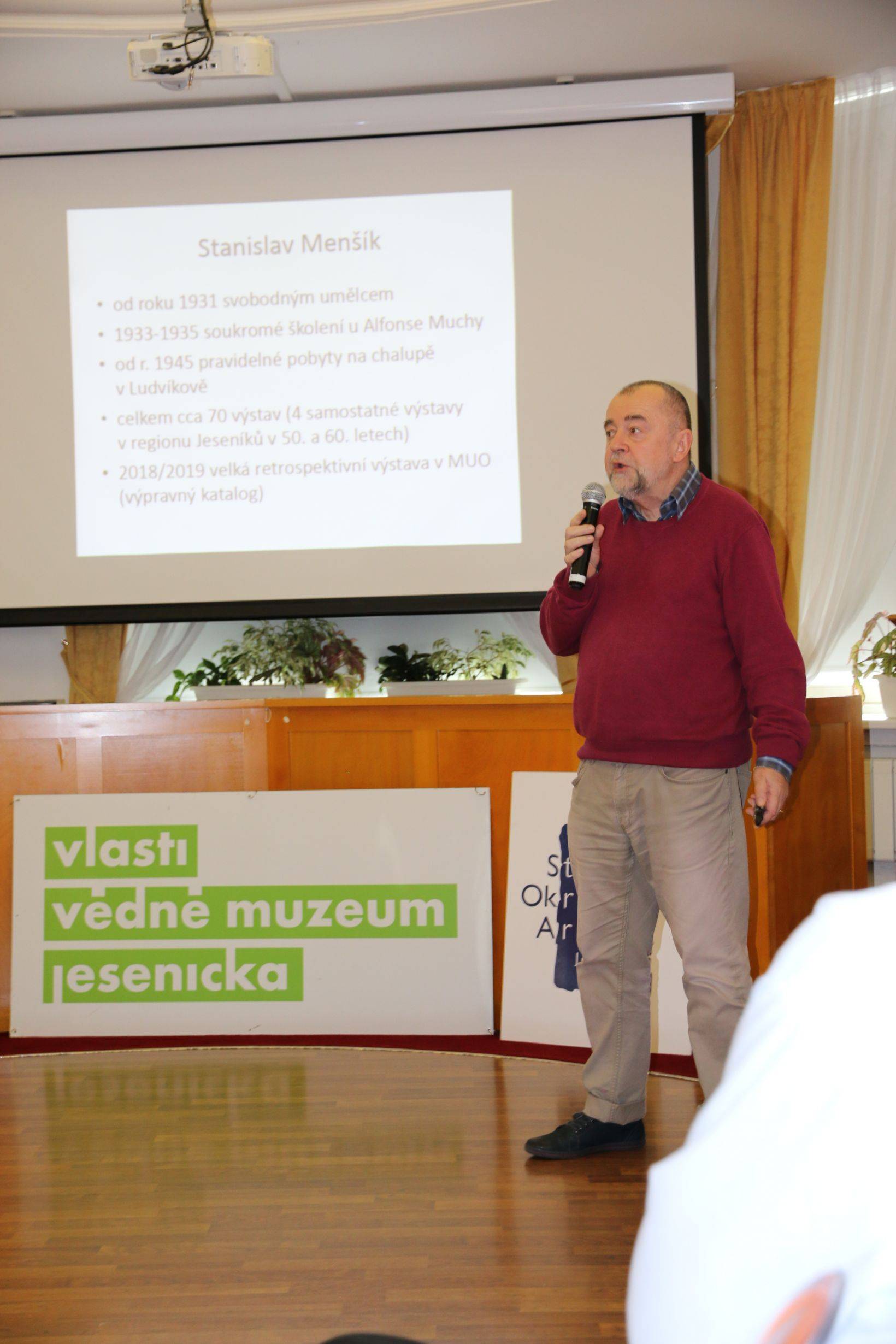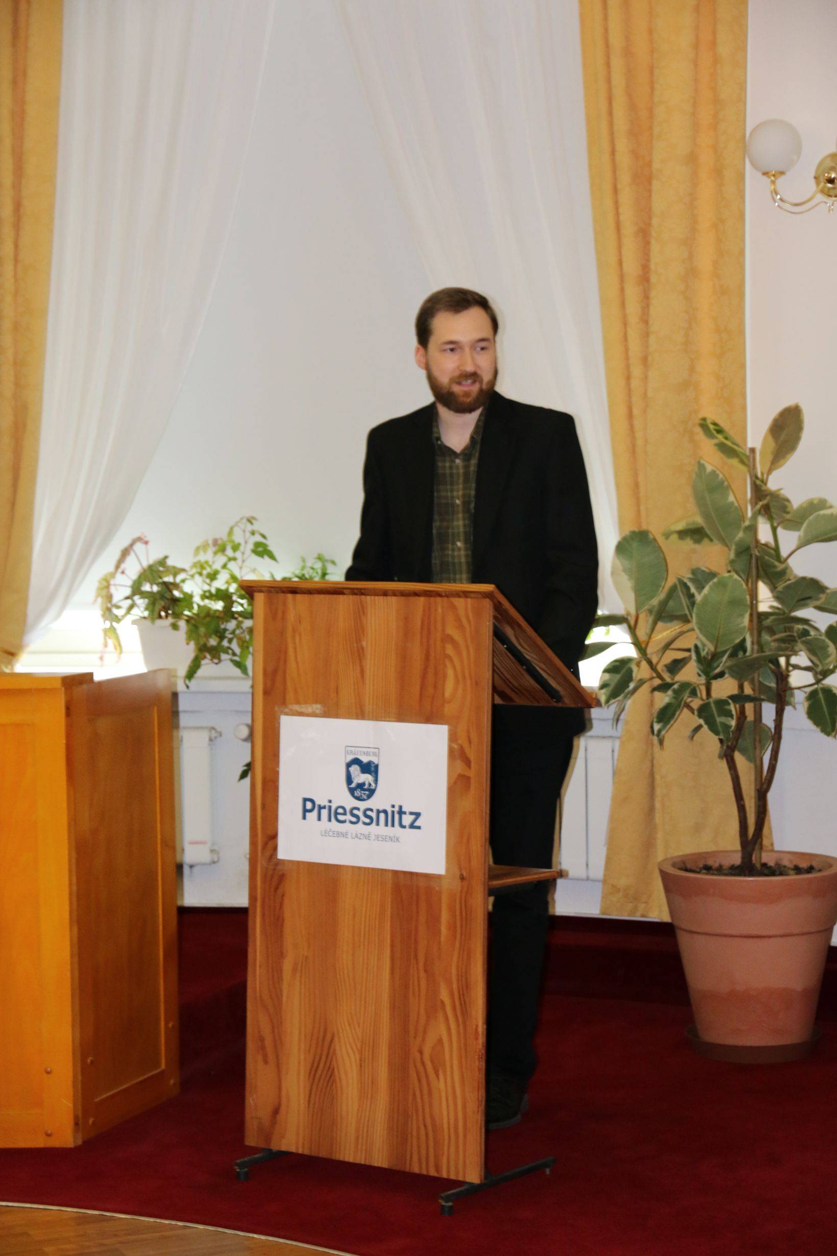 XIX. ročník svatováclavského setkání v Jeseníku28.09.2019 27. a 28. září 2019 Již XIX. ročník svatováclavského setkání se ve dnech 27. a 28. září 2019 uskutečnil pod taktovkou Vlastivědného muzea Jesenicka, Státního okresního archivu Jeseník a Společnosti Vincenze Priessnitze. Na tradičním odborném sympoziu, které se uskutečnilo dne 27. září v Zimní zahradě Priessnitzova sanatoria, jsme se mohli seznámit s uměleckou tvorbou na Jesenicku ve 20. století, zejména s malířskou tvorbou v rozmanitých podobách. Úvodní slova pronesli Mgr. Bohumila Tinzová (vedoucí SOkA Jeseník), Mgr. Miroslav Adámek (Senát Parlamentu ČR), Ing. Miroslava Březinová (vedoucí odboru PŘPO Olomouckého kraje), Mgr. Zdeňka Blišťanová (starostka města Jeseník), Ing. Roman Provazník (gen. ředitel Priessnitzových léčebných lázní) a Mgr. Irena Hošková (náměstkyně Národního institutu pro další vzdělávání MŠMT). V odpoledních hodinách se pak měli zájemci možnost seznámit se dvěma tematickými výstavami, a to formou komentované prohlídky. Ve Vodní tvrzi promluvila o životě a díle místního umělce a preparátora Heinricha Wolfa kurátorka stejnojmenné výstavy, BcA. Ivana Kužílková, kterou vhodně doplnil Mgr. Petr Zobač (Správa CHKO Jeseníky) výkladem o ornitologických zajímavostech vyobrazených druhů ptáků. Návštěvníci se následně přesunuli do IC Katovna, kde se za doprovodu Mgr. Bohumily Tinzové setkali s ukázkami současného výtvarného umění na Jesenicku. Slavnostní den před svátkem sv. Václava zakončilo promítání němého filmu Stavitel chrámu s živým hudebním doprovodem v Kině Pohoda. Dne 28. září, tedy na Den české státnosti, jsme si připomněli násilnou internaci řádových sester v době nástupu vlády komunistické strany. Sváteční mše a pietní položení věnců se konalo v kostele Navštívení P. Marie a na hřbitově v obci Bílá Voda na Javornicku. Akci finančně podpořilo Město Jeseník a Olomoucký kraj. Ke stažení