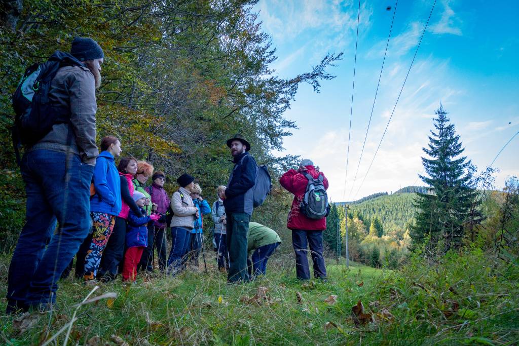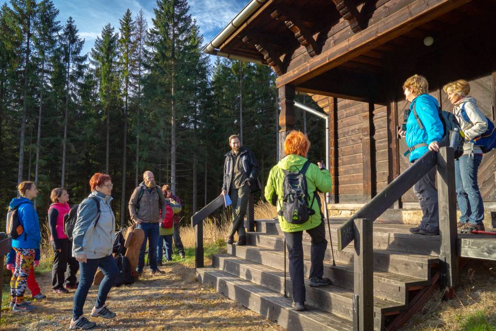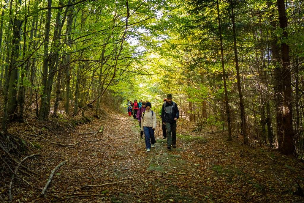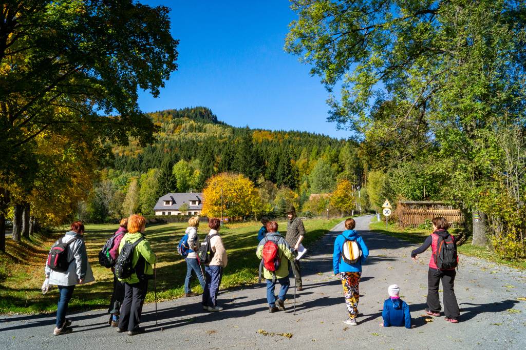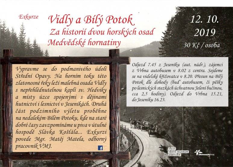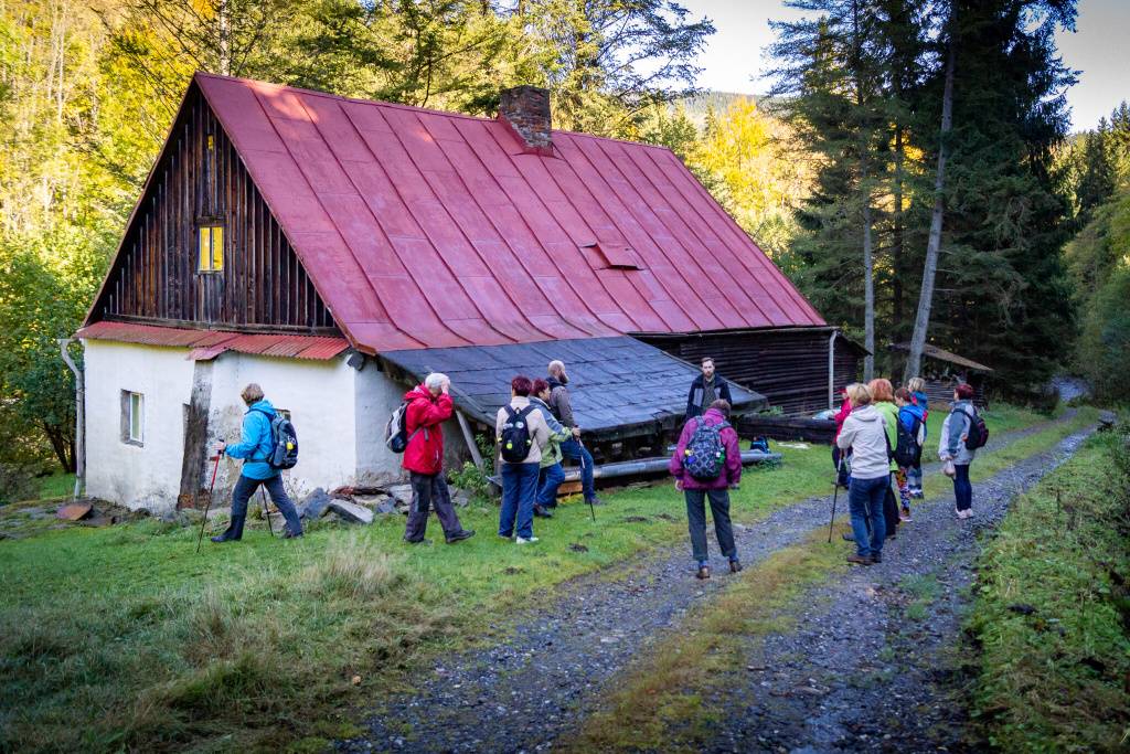 Vycházka za dějinami Videl a Bílého Potoka a krásami podzimních hor12.10.2019 V sobotu 12. 10. 2019 proběhla pod záštitou Vlastivědného muzea Jesenicka celodenní exkurze, jejímž cílem bylo kromě poznání historie vybraných míst Medvědské hornatiny i pokochat se nádhernou podzimní přírodou. Výpravu vedl náš odborný pracovník Matěj Matela, který se touto dosud málo probádanou oblastí dlouhodobě zabývá. Exkurze, jíž se zúčastnilo 15 osob (v drtivé většině ženy), byla zahájena na videlské křižovatce, odkud se účastníci přesunuli k ikonickému místu osady, tedy ke kapli sv. Hedviky (vysvěcena roku 1930). Právě odtud se na malebné horské osídlení naskýtá nejlepší pohled. Zde přednášející posluchačům povyprávěl o dějinách Videl od nejstarších dob (cca polovina 18. století) až do století dvacátého. Svůj výklad doplňoval zajímavými příběhy lesníků, hovořil i o dosud záhadami obestřené vraždě místního hospodského (prosinec 1929). Poté se skupina vydala po starých lesnických stezkách směrem na Bílý Potok. Po přechodu několika potůčků, potřebného posilnění svačinami a fotografování barevných Jeseníků se výprava ocitla v přírodní rezervaci Jelení bučina, v nejzachovalejším lesním porostu v Jeseníkách v pásmu listnatého a smíšeného lesa. Zde si účastníci vyslechli výklad nejen o této vzácné lokalitě, ale např. také o fenoménu kamzíka horského v těchto horách či borovice kleče. Další kroky vedly směrem na tzv. Ptačí mlýn, někdejší pilu Řádu německých rytířů stojící v blízkosti Střední Opavy. Zde si účastníci vyslechli povídání o peripetiích rodiny Teipnerů, majitelů objektu v 19. a v první polovině 20. století. Po železném mostku se výprava dostala do cíle, tedy na Bílý Potok zahalený do pestrých barev podzimu. Tam jim Matěj Matela vyložil historii osady a zejména přiblížil osudy některých zajímavých lesníků. Následně se celá skupina přesunula do soukromého loveckého klubu pana Košťála, kde si odpočinula u chlazeného piva. Zatímco mužská menšina se spokojila s tímto příjemným zakončením výletu, ženská většina se vydala prozkoumat ještě jednu místní zajímavost – zříceninu hrádku Weissenstein vzdálenou asi tři čtvrtě hodiny chůze. Někteří účastníci se pak do Jeseníku vydali pěšky přes Pásmo Orlíka, jiní se spolehli na autobus. Autorem fotografií je jeden ze členů výpravy Juraj Kováč. | |