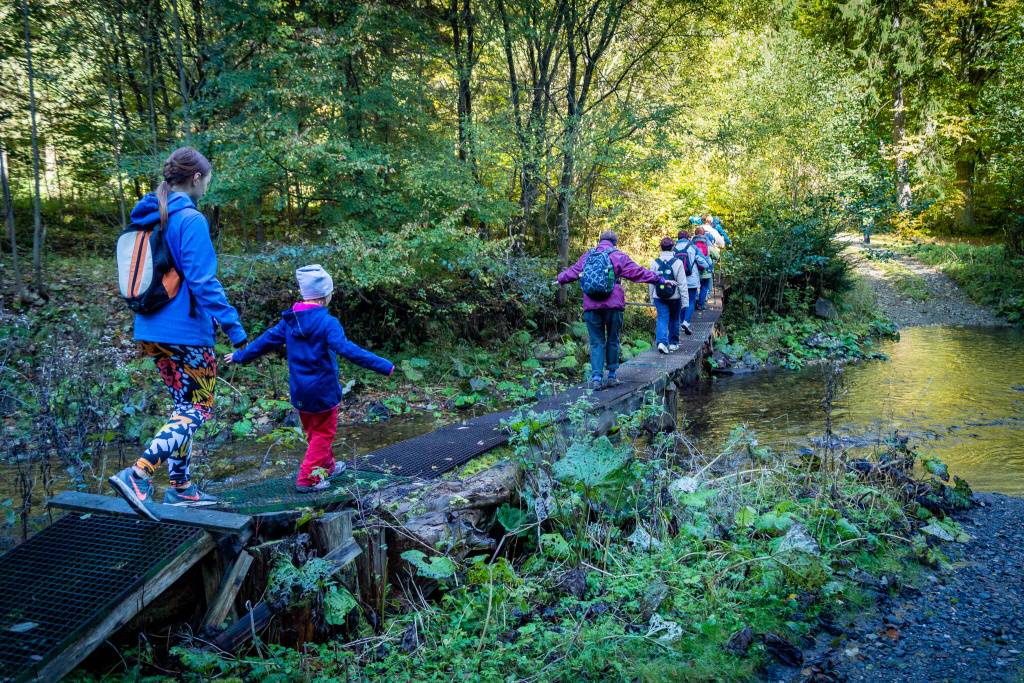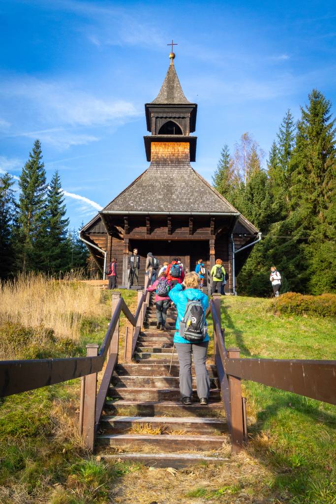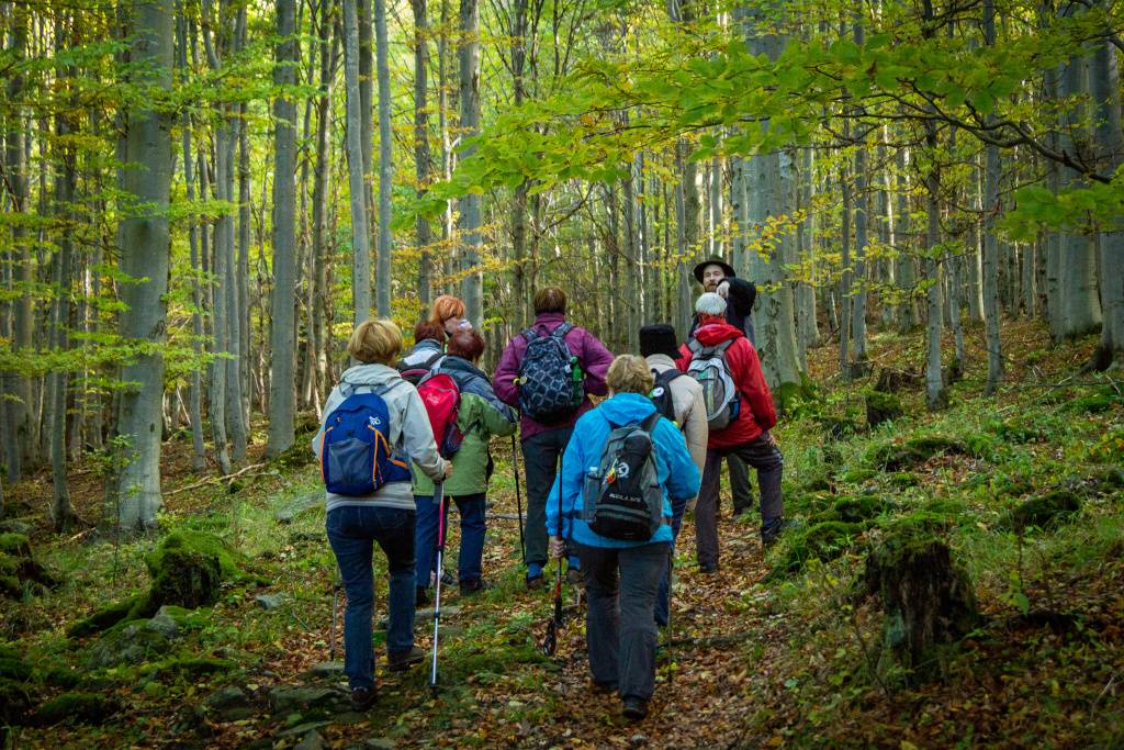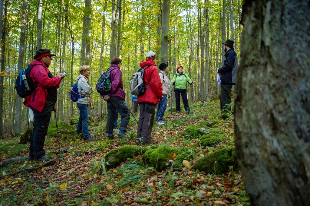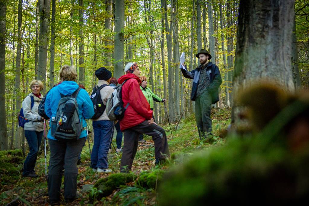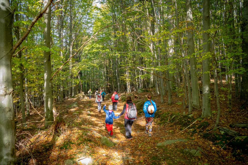 Vycházka za dějinami Videl a Bílého Potoka a krásami podzimních hor12.10.2019 V sobotu 12. 10. 2019 proběhla pod záštitou Vlastivědného muzea Jesenicka celodenní exkurze, jejímž cílem bylo kromě poznání historie vybraných míst Medvědské hornatiny i pokochat se nádhernou podzimní přírodou. Výpravu vedl náš odborný pracovník Matěj Matela, který se touto dosud málo probádanou oblastí dlouhodobě zabývá. Exkurze, jíž se zúčastnilo 15 osob (v drtivé většině ženy), byla zahájena na videlské křižovatce, odkud se účastníci přesunuli k ikonickému místu osady, tedy ke kapli sv. Hedviky (vysvěcena roku 1930). Právě odtud se na malebné horské osídlení naskýtá nejlepší pohled. Zde přednášející posluchačům povyprávěl o dějinách Videl od nejstarších dob (cca polovina 18. století) až do století dvacátého. Svůj výklad doplňoval zajímavými příběhy lesníků, hovořil i o dosud záhadami obestřené vraždě místního hospodského (prosinec 1929). Poté se skupina vydala po starých lesnických stezkách směrem na Bílý Potok. Po přechodu několika potůčků, potřebného posilnění svačinami a fotografování barevných Jeseníků se výprava ocitla v přírodní rezervaci Jelení bučina, v nejzachovalejším lesním porostu v Jeseníkách v pásmu listnatého a smíšeného lesa. Zde si účastníci vyslechli výklad nejen o této vzácné lokalitě, ale např. také o fenoménu kamzíka horského v těchto horách či borovice kleče. Další kroky vedly směrem na tzv. Ptačí mlýn, někdejší pilu Řádu německých rytířů stojící v blízkosti Střední Opavy. Zde si účastníci vyslechli povídání o peripetiích rodiny Teipnerů, majitelů objektu v 19. a v první polovině 20. století. Po železném mostku se výprava dostala do cíle, tedy na Bílý Potok zahalený do pestrých barev podzimu. Tam jim Matěj Matela vyložil historii osady a zejména přiblížil osudy některých zajímavých lesníků. Následně se celá skupina přesunula do soukromého loveckého klubu pana Košťála, kde si odpočinula u chlazeného piva. Zatímco mužská menšina se spokojila s tímto příjemným zakončením výletu, ženská většina se vydala prozkoumat ještě jednu místní zajímavost – zříceninu hrádku Weissenstein vzdálenou asi tři čtvrtě hodiny chůze. Někteří účastníci se pak do Jeseníku vydali pěšky přes Pásmo Orlíka, jiní se spolehli na autobus. Autorem fotografií je jeden ze členů výpravy Juraj Kováč. | |