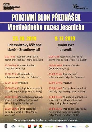 Podzimní blok přednášek v Priessnitzových léčebných lázních23.10.2019 23. října 2019, Zrcadlový sál Priessnitzových léčebných lázní Během přednáškového pásma zazněly tyto příspěvky: