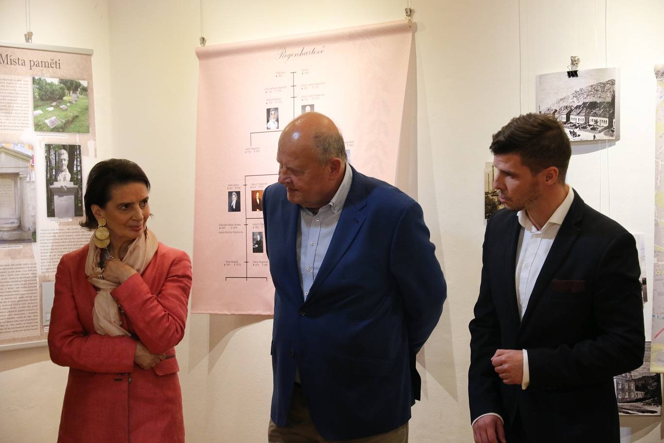 Regenhart & Raymann. Dvě rodiny, které navždy proměnily tvář města (vernisáž)26.11.2019 26. listopadu 2019, Hlavní výstavní sál Vodní tvrze Vernisáž výstavy, připomínající letošní dvousetleté výročí obchodního spojení rodin Raymannů a Regenhartů, předcházelo během dne několik dalších akcí. Nejprve v dopoledních hodinách navštívily Vodní tvrz potomci obou rodin, konkrétně paní Michaele Schenk-Lovison (vnučka Erwina Regenharta) z Berlína a Carina Mazelle z Vídně (z 5. generace potomků po Adolfu Raymannovi mladším) s manželi. Prohlédli si výstavu s komentářem kurátora Jan Petráska, pohovořili s vedením muzea a pronesli několik slov do zpravodajské reportáže České Televize. Poté byli na vlastní žádost doprovozeni na prohlídku bývalého továrního komplexu na soutoku Bělé a Staříče. Odpolední program, tentokráte již věnovaný široké veřejnosti, byl zahájen vzpomínkovým aktem na městském hřbitově u hrobu Ernsta Regenharta a náhrobních kamenů více jak desítky rodinných příslušníků rodiny Raymannů, které se podařilo právě v souvislosti s výročím a výstavou revitalizovat a navrátit jim důstojnější podobu. Zástupci města a muzea položili u hrobů věnce a několik slov pronesla starostka města Zdeňka Blišťanová, autor výstavy Jan Petrásek a u hrobu svých předků rovněž paní Michaele a Carina. V 18.00 hodin následovalo slavnostní otevření výstavy za hudebního doprovodu žáků ZUŠ Jeseník. Promluvil ředitel muzea Pavel Rušar, jednatel společnosti Fenix Trading s.r.o. a Cyril Svozil jakožto sponzor výstavy a obsah výstavy na samotný závěr shrnul autor výstavy. Po skončení vernisáže byl potomkům rodiny umožněn přístup a prohlídka bývalé Raymannovy vily. Krátká reportáž SLAVNOSTNÍ VERNISÁŽI PŘEDCHÁZEL VZPOMÍNKOVÝ AKT na stránkách města Jeseník. | |