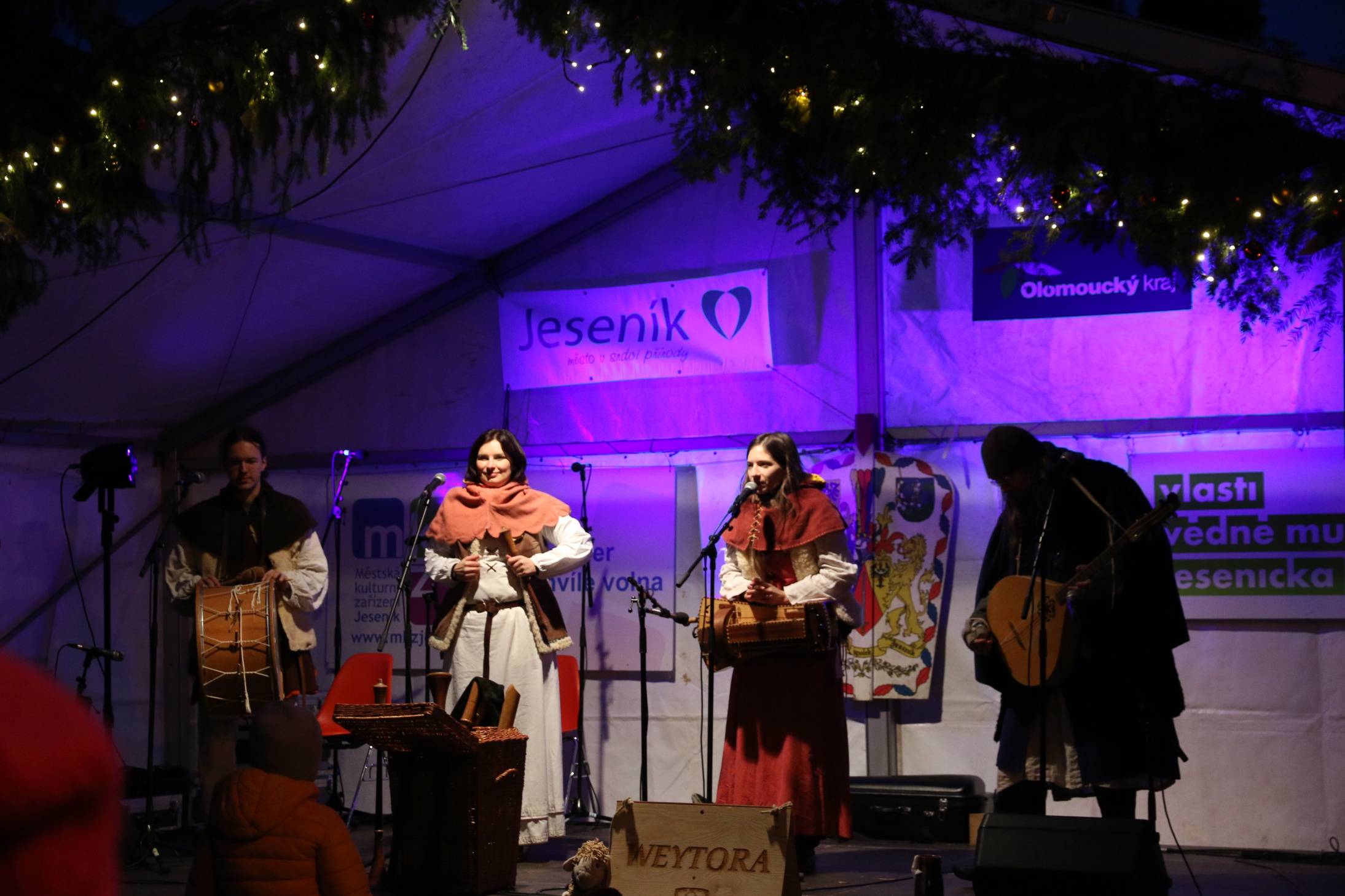 Vánoční jarmark ve Vodní tvrzi a na Zámeckém náměstí 201907.12.2019 6. a 7. prosince 2019 Jubilejní desátý Vánoční jarmark ve Vodní tvrzi a na Zámecké náměstí se uskutečnil v pátek 6. a sobotu 7. prosince 2019. Stánky s bohatým sortimentem dárků, dekorací či pochutin doprovodili řemeslní kováři, rezbáři, slévači a mnozí další mistři středověkých cechů. Hudební doprovod zajistili kapely Weytora, Calata, komorní sbory Florian a Jesen, jedinečný Ondra Kozák a dětský sbor Běláčci. V pátek i sobotu pak členové spolku EduArt dramaticky ztvárnili příběh z dalekého Betléma. Vedle tradičních dílniček si mohli návštěvníci vychutnat charitativní punč či čaj na pavlači druhého patra Vodní tvrze, kterou pro návštěvníky ve spolupráci se spolkem Sudeticus připravili klienti azylového domu Boétheia. Na organizaci jarmarku se podobně jako minulý rok podíleli Vlastivědné muzeum Jesenicka, Městská kulturní zařízení Jeseník a Šermířský spolek Jeseník. Vánoční jarmark realizují organizátoři díky podpoře Olomouckého kraje, města Jeseník, Lesů ČR, obce Bělá pod Pradědem a dalších. Všem sponzorům a podporovatelům velice děkujeme. Ke stažení